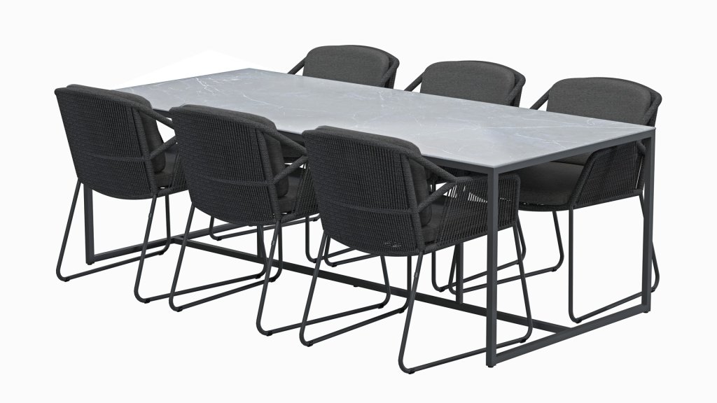 1 x 4Seasons Outdoor Quatro tafel 220x95cm Alu Antraciet-Keramiek Light Grey Marble