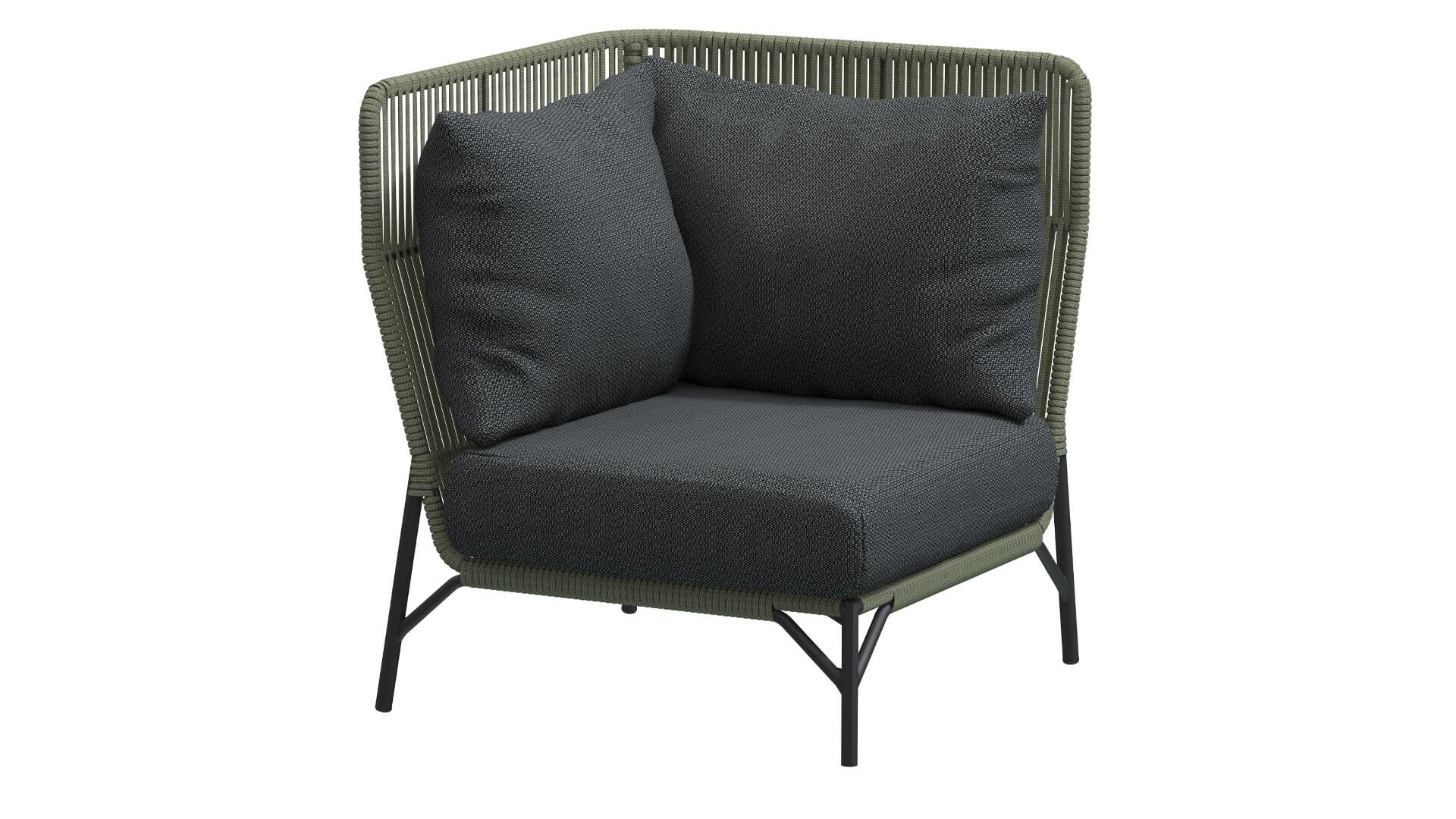 De 4SO modulair Altoro loungeset heeft door zijn extra hoge rugleuning een mooie uitstraling en het geeft een geborgen en cosy gevoel. De Altoro loungeset is afgewerkt met groen rope, wat een schitterend contrast geeft met het donker antraciete frame en kussens.