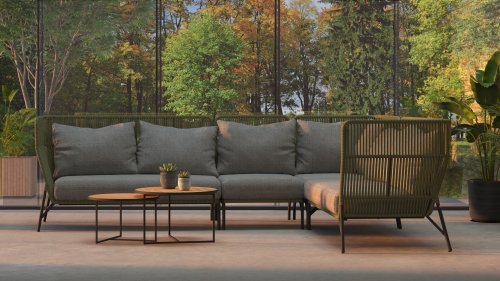 De 4SO modulair Altoro loungeset heeft door zijn extra hoge rugleuning een mooie uitstraling en het geeft een geborgen en cosy gevoel. De Altoro loungeset is afgewerkt met groen rope, wat een schitterend contrast geeft met het donker antraciete frame en kussens.