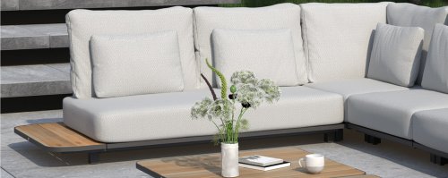 De Arcade loungeset is modulair en stelt u zelf uw ideale set samen. Door het tussenmodule kunt u de set eenvoudig uitbreiden, in spiegelbeeld plaatsen en voor een compacte ruimte kunt u ook voor een maatje kleiner kiezen. Ook kunt u de hoekbank combineren met twee salontafels, extra ruimte voor een hapje en een drankje of mooie decoratie die uw loungeset helemaal af maakt. Doordat de poten van deze lounge dieper onder de bank zijn geplaatst lijkt het alsof deze loungebank lijkt te zweven. Dit geeft een prachtig zicht op een strak modern terras.
