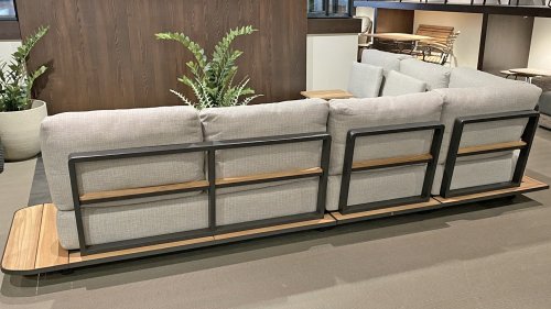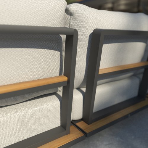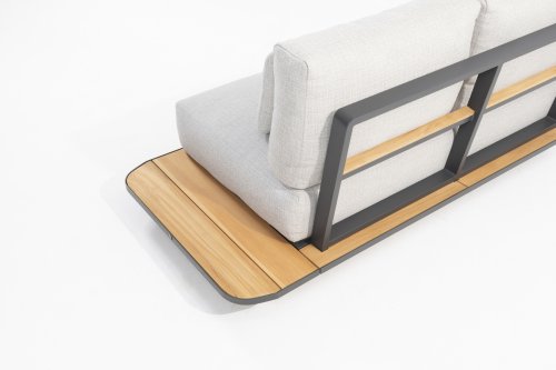Door de opengewerkte rugleuningen met teakhout accenten is het niet erg om tegen de achterkant van deze lounge aan te kijken. Onder de zitkussens zit een bodem van textileen wat voorkomt dat deze lounge door gaat zitten. Hierdoor blijft het comfort altijd gelijk. De teakhouten zijpanelen lopen helemaal door tot aan de achterkant waar u dan met wat behendigheid het extra wijntje of biertje kunt verstoppen. Kortom: de 4 Seasons Arcade lounge geeft u het gevoel dat loungen en relaxen echt bestaat!