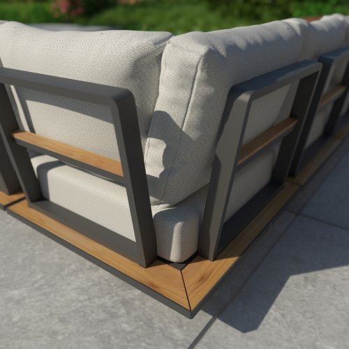 De 4 Seasons Outdoor Arcade loungeset is een nieuwe 2021 loungeset van het nederlandse topmerk 4SO. Wie op zoek is naar het luxe buitenleven, moet zeker de platform lounge Arcade bekijken en ervaren. De Arcade loungeset geeft u het premium gevoel waar u naar op zoek bent. De Arcade hoekbank is een platform loungebank, vervaardigd van antraciet aluminium en duurzaam teakhout. De all weather kussens in de lichte stof geeft een mooi contrast met het geheel. De kussens zijn extra dik en geven u een comfortabele zit. Door de extra meegeleverde lende kussens zit u gegarandeerd goed ongeacht uw lengte. Daarnaast zorgen deze extra kussentjes ervoor dat u heerlijk in de hoek kunt ploffen en comfort van alle kanten kan ervaren.