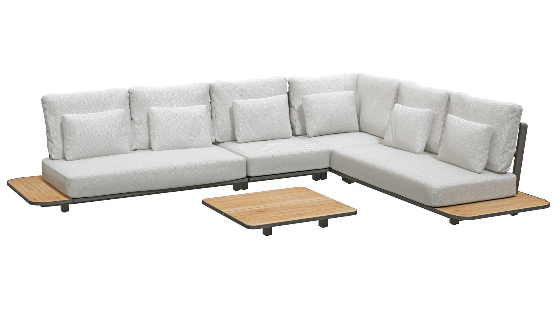 4Seasons Outdoor Arcade Lounge is ontworpen om eruit te zien alsof het zweeft. Dankzij de lage platformdelen aan de zijkanten en de zeer lage tafels vallen de teak delen in Arcade goed op. De dikke kussens en een robuuste achterkant maken een statement en garanderen vooral fantastisch comfort.