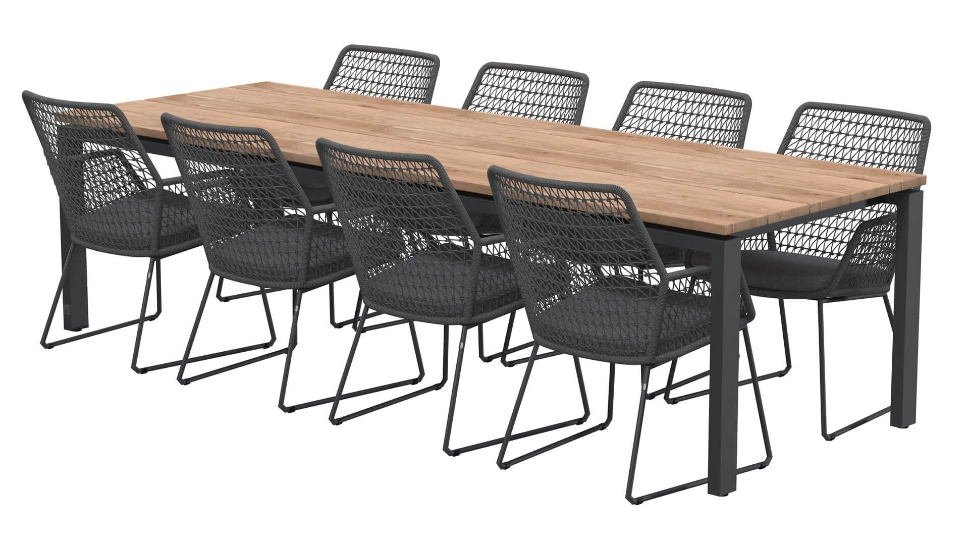 1 x 4 Seasons Outdoor Goa tafel 280x95cm Teak-Alu Antraciet