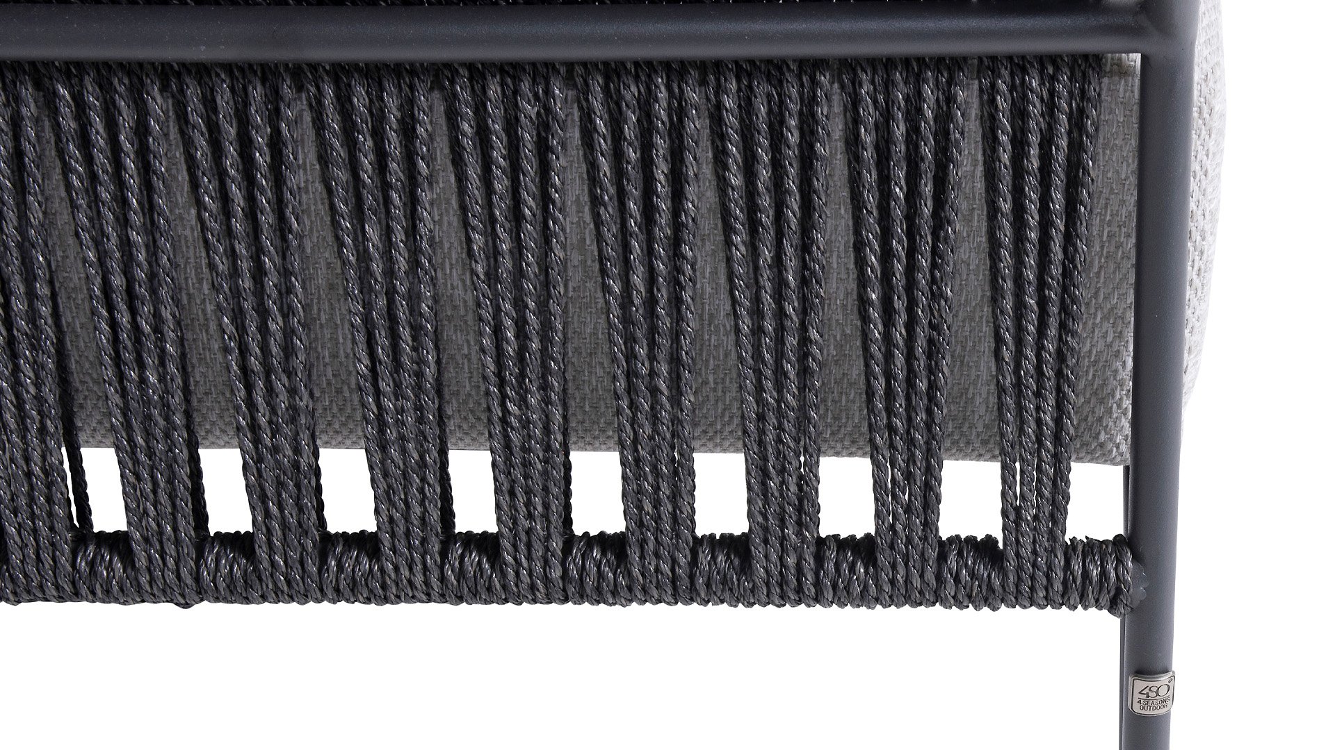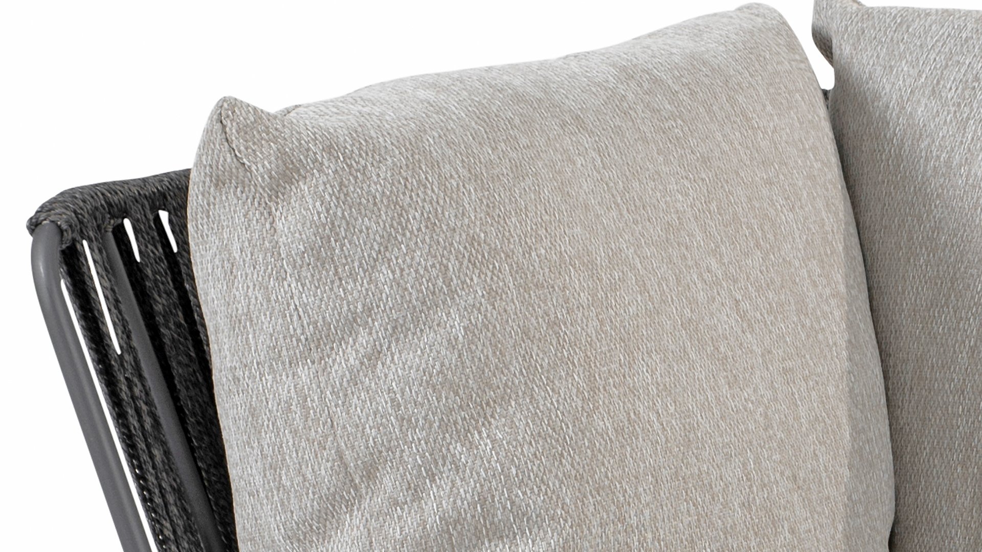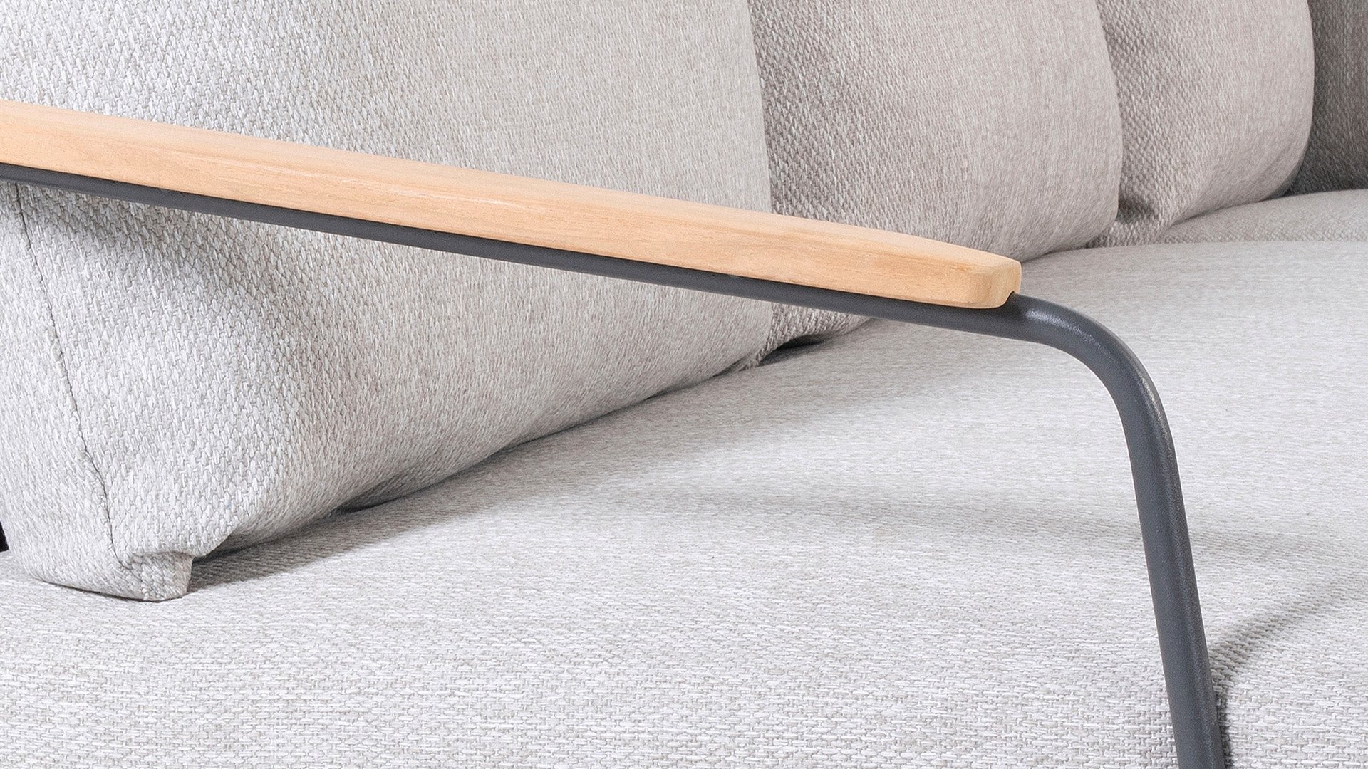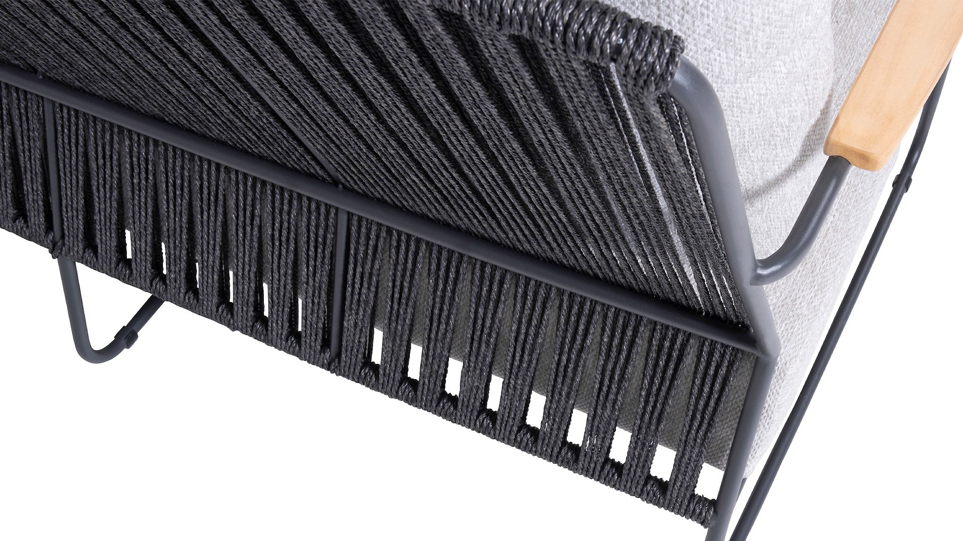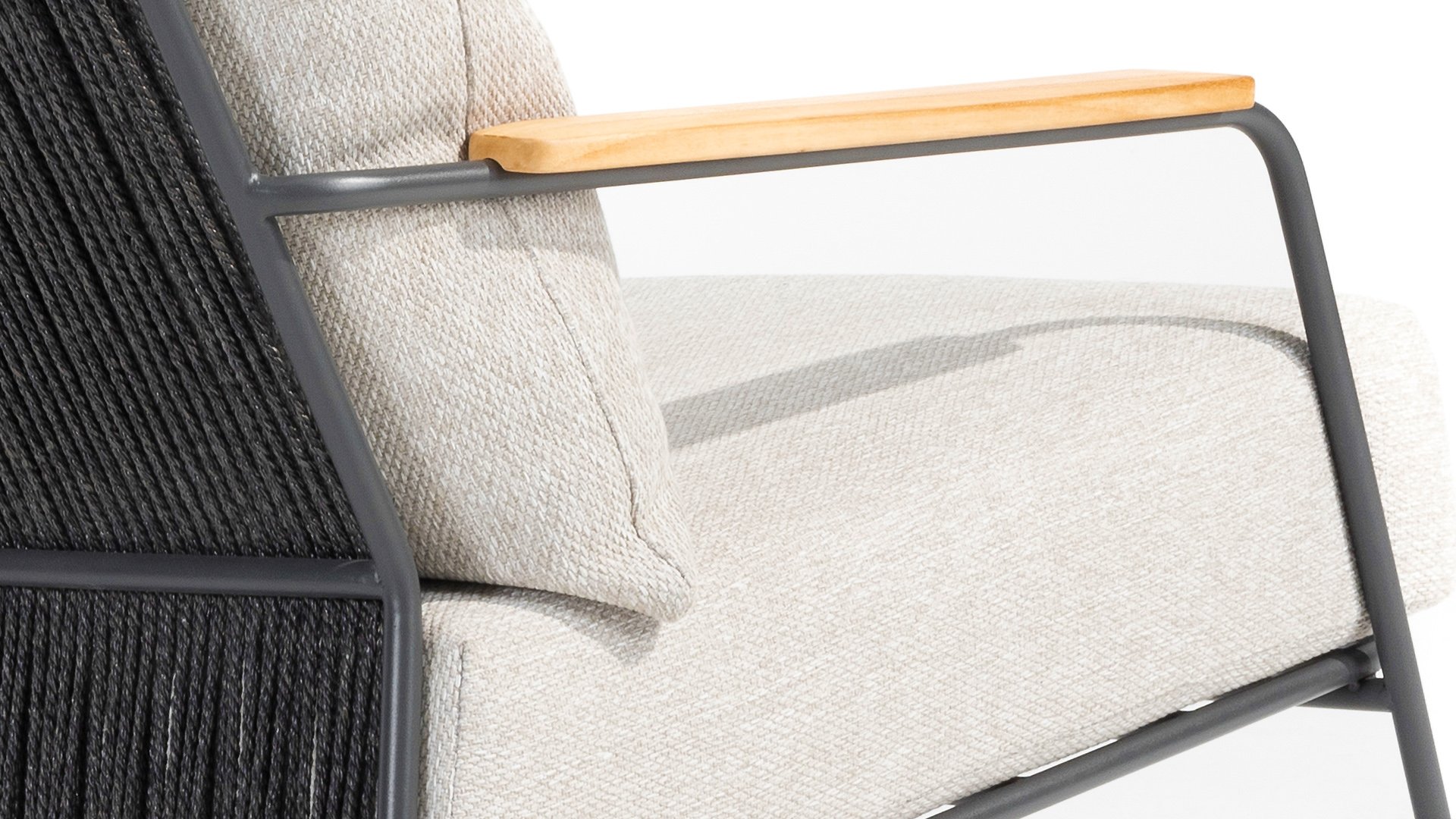 De Balade loungeserie van 4Seasons Outdoor is minimalistisch vormgegeven. De ranke rvs frames gepoedercoat in de kleur antraciet en de prachtige afwerking met weersbestendig Rope in de rugleuning gecombineerd met minimalistische comfortabele teakhouten armleggers, geven de Balade loungeset een industriële en eigentijdse uitstraling aan uw terras. Het frame is elegant vormgegeven en heeft op de armleuning warme teakaccenten. De Balade loungeserie bestaat uit een modulaire hoekopstelling en een losse opstelling.