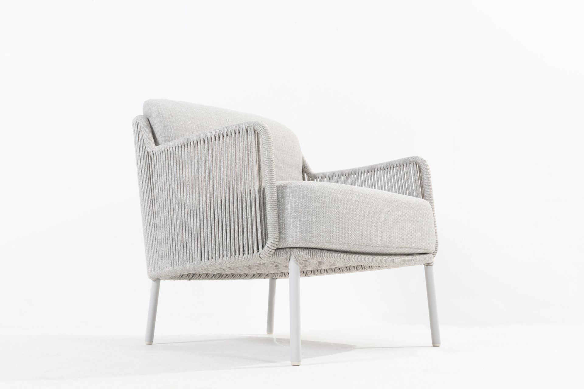 Prachtige vormen stromen door Bernini, een 4 Seasons Outdoor lounge stoel met een prachtig ontwerp. De rug en armleuningen zijn gemaakt van Rope. Rope is een prachtig zacht materiaal met een moderne uitstraling. Het touw is zeer sterk, UV-bestendig en heeft een zeer lage trekkracht. Het touw kan ook weinig of geen vocht en vuil opnemen. Deze Bernini Lounge serie van 4Seasons zal een absoluut icoon zijn in je tuin.