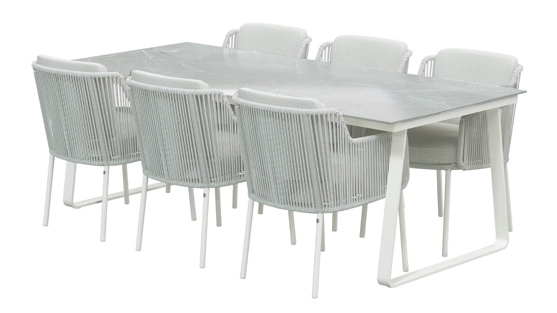 1 x 4Seasons Konos tafel 220x95cm Alu Frost Grey-Keramiek Light Grey Marble