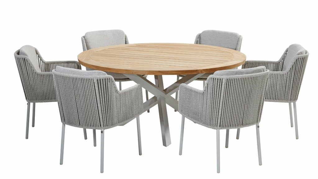1 x Taste Prado tafel Ø160cm Teak-Alu Frost Grey
