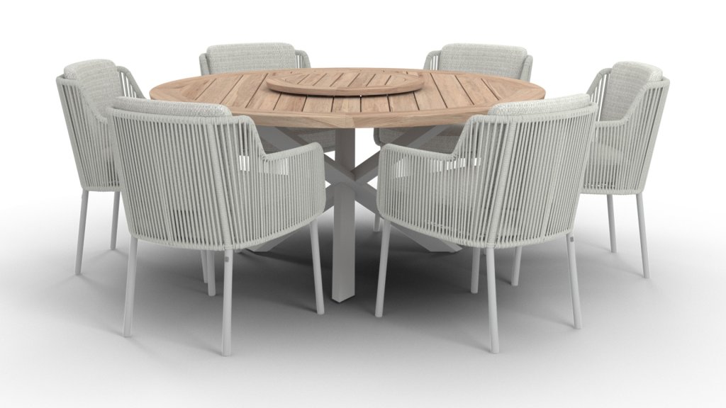 1 x Taste Prado tafel Ø160cm Teak-Alu Frost Grey