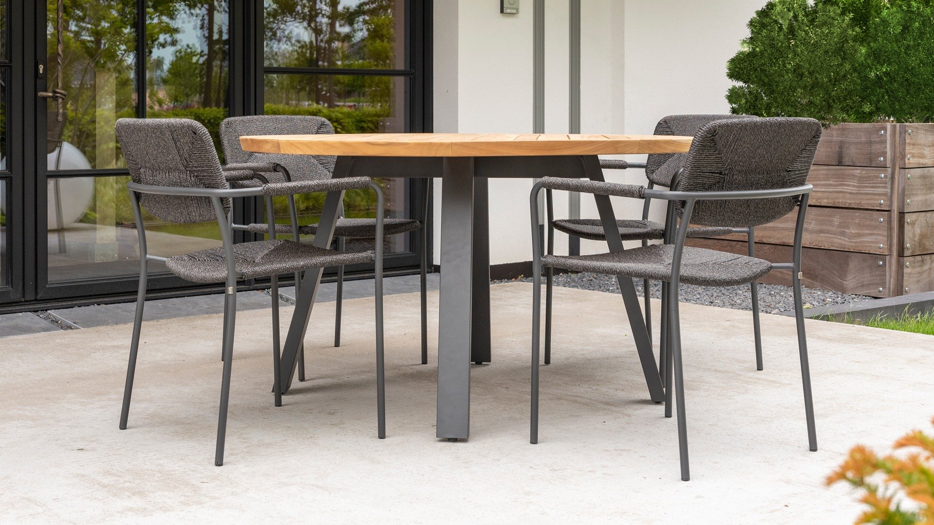 De stapelbare Bora dining tuinstoel van 4Seasons Outdoor is een prachtige eyecather op je terras. Een mooie comfortabele stoel, die in vele tuin stijlen niet misstaat. De trendy Bora tuinstoel van het tuinmeubel merk 4Seasons, is een stapelbare wicker tuinstoel. Het open design is mede mogelijk gemaakt, doordat er gekozen is voor een RVS gepoedercoat frame. Daaromheen zit gedraaid onderhoudsvrij wicker, welke een natuurlijk look heeft. De Bora is er in 3 varianten, de antraciet kleur, de Natural kleur en Antraciet met teakhouten armleuningen. Het RVS frame is afgewerkt met een hoogwaardige antracietkleurige poedercoating.