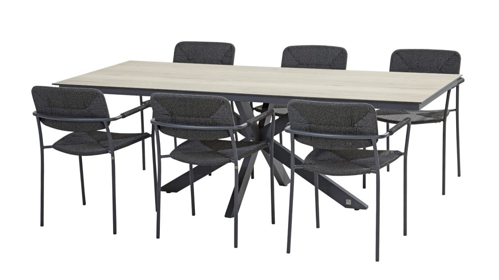 1 x 4Seasons Minerva tafel 220x95cm Antraciet-HPL Teak Pattern
