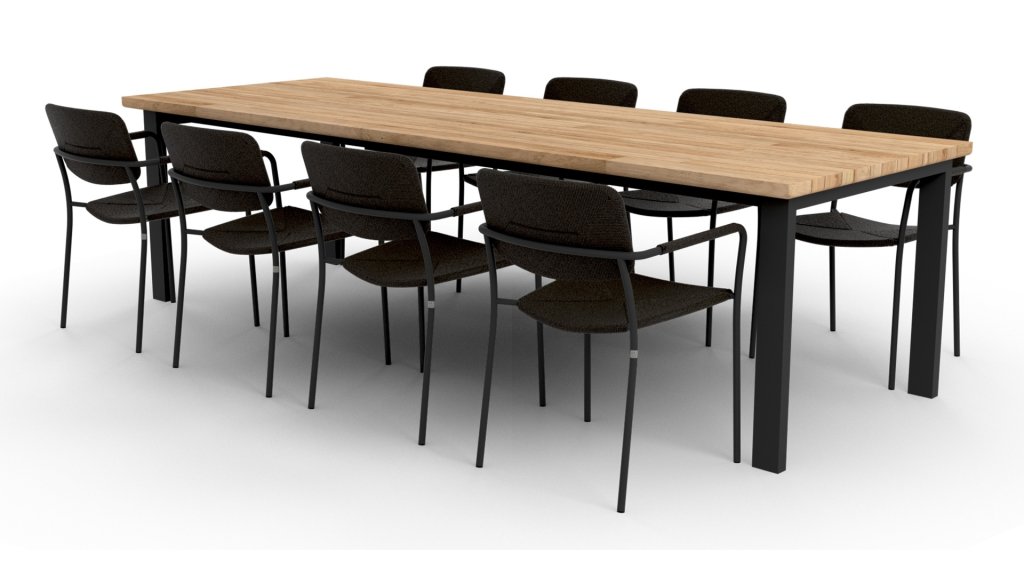 1 x 4Seasons Outdoor Goa tafel 280x95cm Goa Teak-Alu Antraciet