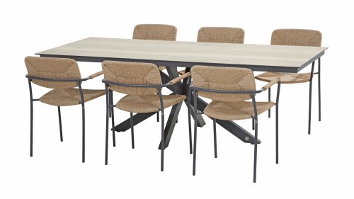 1 x 4Seasons Minerva tafel 220x95cm Antraciet-HPL Teak Pattern