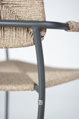 De Bora met zijn minimalistisch design, strakke afwerking en fantastisch comfort. Uniek in zijn soort door het gedraaide wicker vlechtwerk. Verkrijgbaar in het Antraciet, Naturel & Antraciet met teak arm, kies je favoriet en geniet met volle teugen van het buitenleven. Het draad is van kunststof, dit maakt het weer- en schimmelbestendig, daarnaast is het ook kleurvast. Zowel de zitting als de rugleuning is gemaakt van dit materiaal en ook de armleuning zijn omwikkeld met hetzelfde vlechtwerk.