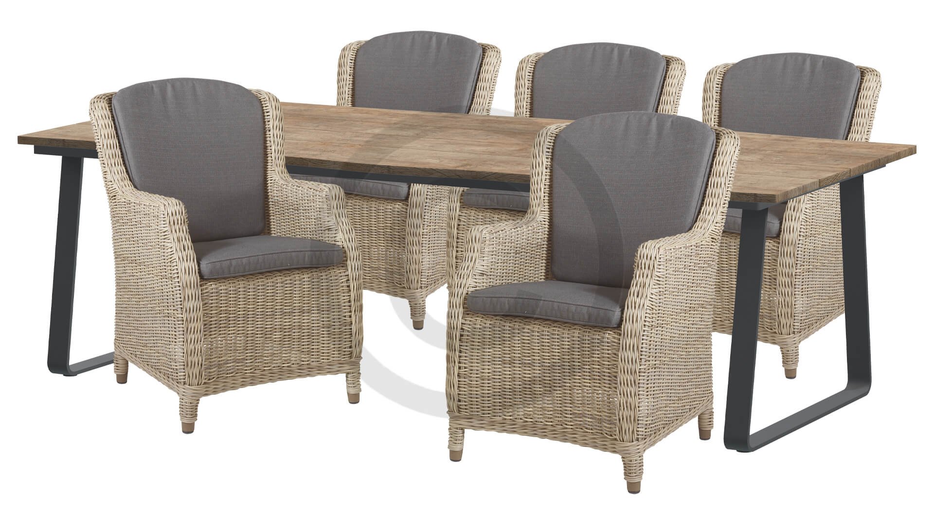 1 x 4 Seasons Outdoor Konos Tafel 220x95cm Antraciet/Robusto Teak