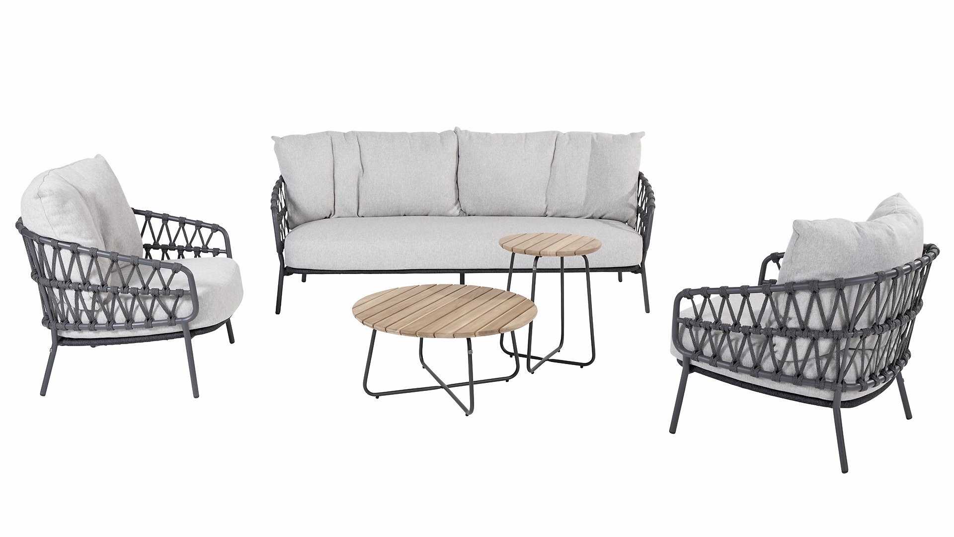 De 4Seasons Calpi Lounge bestaat uit een RVS onderstel met rope delen welke bestand zijn tegen verschillende weersinvloeden.