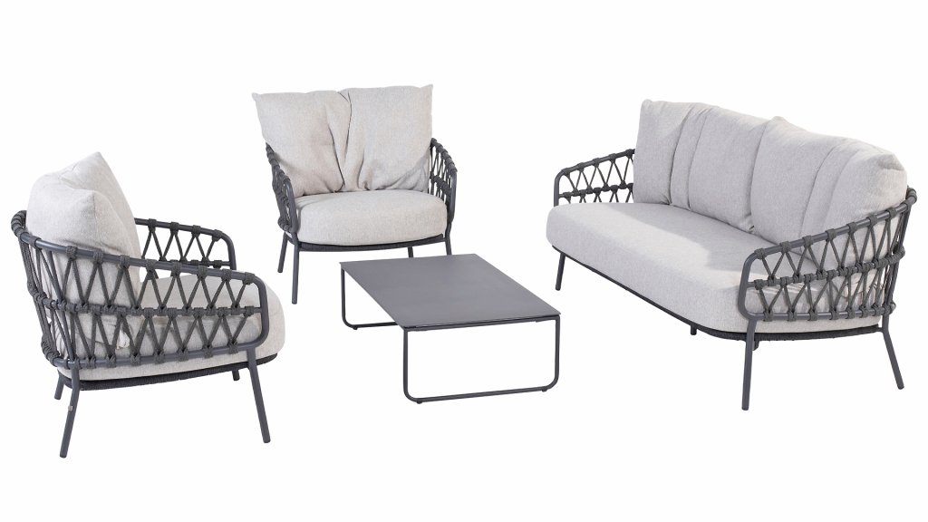 De Calpi serie van 4 Seasons Outdoor heeft een eigentijds design en geeft ieder terras de premium looks waar u naar op zoekt bent. De brede rope delen zijn op een originele manier gevlochten en geeft de Calpi een open karakter. De 4Seasons Calpi wordt geleverd met kussens in een all weather stof. Deze stof heeft een water en vuil werende werking, waardoor deze bestand zijn tegen vele weersinvloeden. Het frame is gemaakt van gepoedercoat RVS, waardoor de Calpi Loungeset zeer geschikt is om het hele jaar door buiten te laten staan.