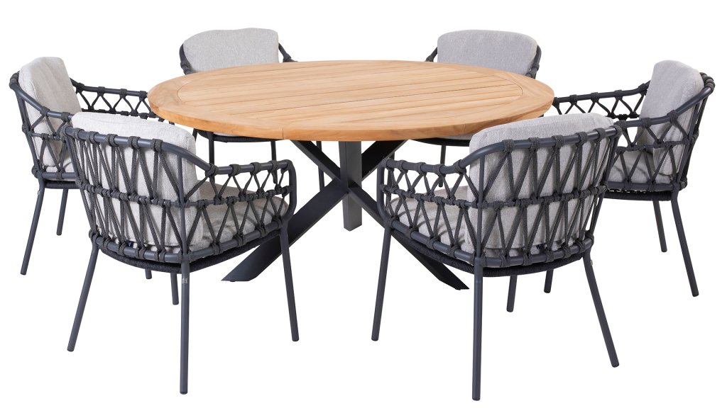 1 x Taste Prado tafel Ø160cm teak-alu antraciet