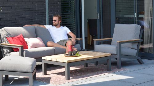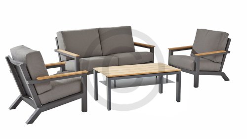 De 4 Seasons Capitol loungeset is een zeer comfortabel en robuust vormgegeven loungeset met een modern design. Een relaxte set om heerlijk in te loungen met een goed boek of de nieuwste glossy. De 4SO Capitol is uitgevoerd in rusitge neutrale kleuren en past daarom in vrijwel iedere tuin. Het frame is van hoogwaardig antraciet gepoedercoat aluminium afgewerkt met weerbestendig teakhouten armleggers.De grijze kussens zijn extra dik uitgevoerd en zien er uitnodigend uit. De stof is weerbestendig en heeft een stoer uiterlijk. Onder de zitkussens is een Textileen bespanning, hiermee wordt het zitcomfort nog meer vergroot.