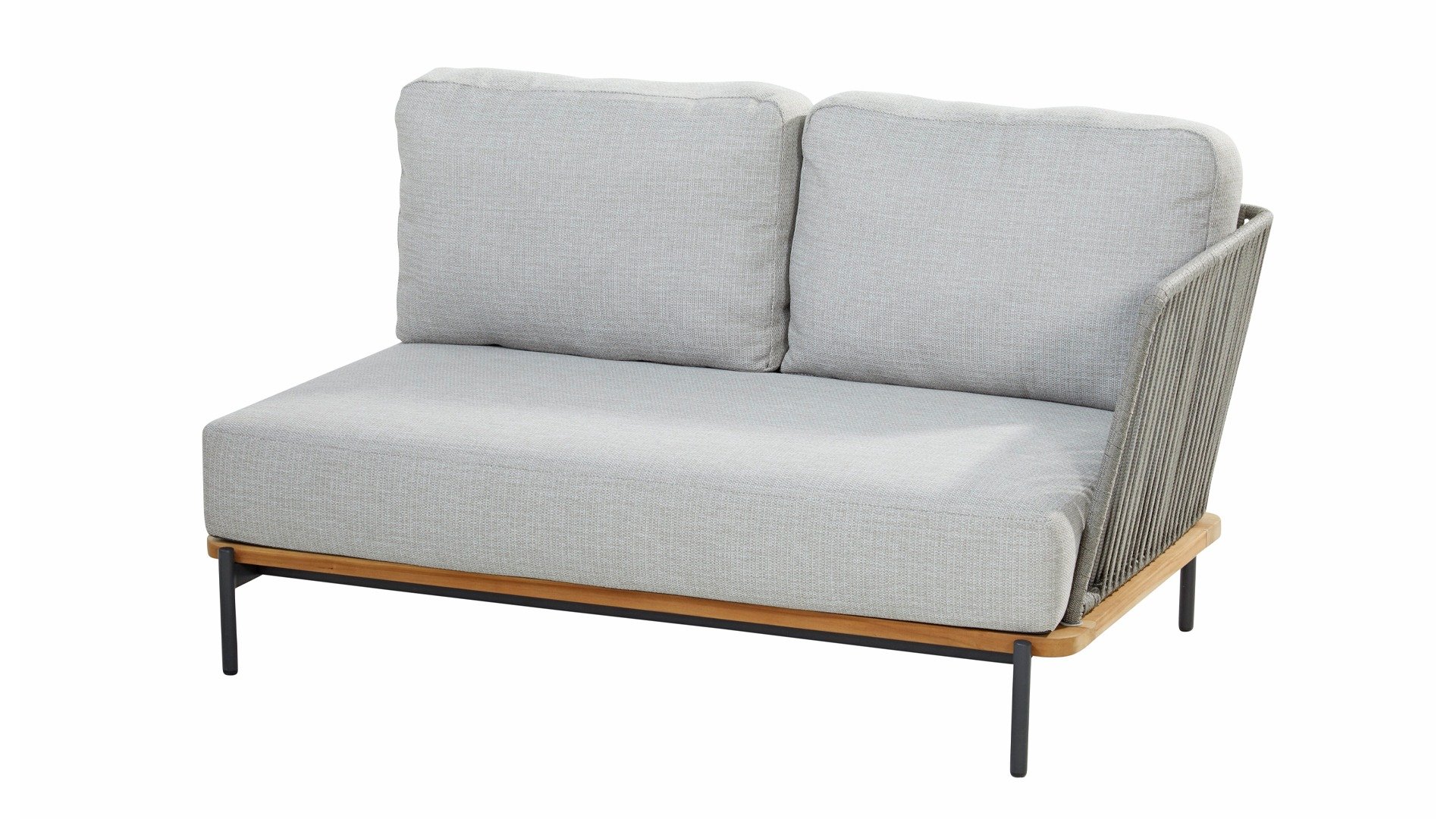 De Castello loungeserie van 4 Seasons Outdoor heeft met zijn unieke uitstraling een zeer elegante uitstraling op je terras. Door het combineren van touw en teak materialen kan een warme en luxe uitstraling worden gecreëerd. Castello 's sterke en duurzame touwen hebben een bevroren kleur, met lichte kleuren met grijstinten. Deze kleur past perfect bij de natuurlijke uitstraling van warm teak dat aan de basis is toegevoegd. Het all-weather kussen maakt het nog perfecter en zorgt voor het beste rijcomfort. Castello is een modulaire loungeset, wat betekent dat u door te combineren met de beschikbare modules vele configuraties kunt creëren die aan uw specifieke behoeften voldoen. Om de goede conditie en kleur van teak te behouden, raden wij het gebruik van 4SO onderhoudsproducten aan.