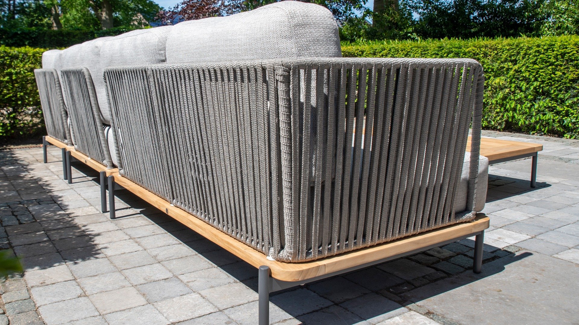 De Castello loungeserie van 4 Seasons Outdoor heeft met zijn unieke uitstraling een zeer elegante uitstraling op je terras. Door het combineren van touw en teak materialen kan een warme en luxe uitstraling worden gecreëerd. Castello 's sterke en duurzame touwen hebben een bevroren kleur, met lichte kleuren met grijstinten. Deze kleur past perfect bij de natuurlijke uitstraling van warm teak dat aan de basis is toegevoegd. Het all-weather kussen maakt het nog perfecter en zorgt voor het beste rijcomfort. Castello is een modulaire loungeset, wat betekent dat u door te combineren met de beschikbare modules vele configuraties kunt creëren die aan uw specifieke behoeften voldoen. Om de goede conditie en kleur van teak te behouden, raden wij het gebruik van 4SO onderhoudsproducten aan.