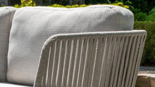 De tuinset in de Castello buitenlounge in 4 seizoenen is een soort pure schoonheid. Het uiterlijk is voortreffelijk en het ontwerp is gemaakt van hoogwaardige materialen. Deze touwsalon is zeer comfortabel, mede door de all weather tuinkussens. De mooie hoge rugleuning zorgt voor een goede ondersteuning, en het zitcomfort is veel geprezen. De Castello loungeset van 4SO is van alle kanten mooi en zeker het geld waard!