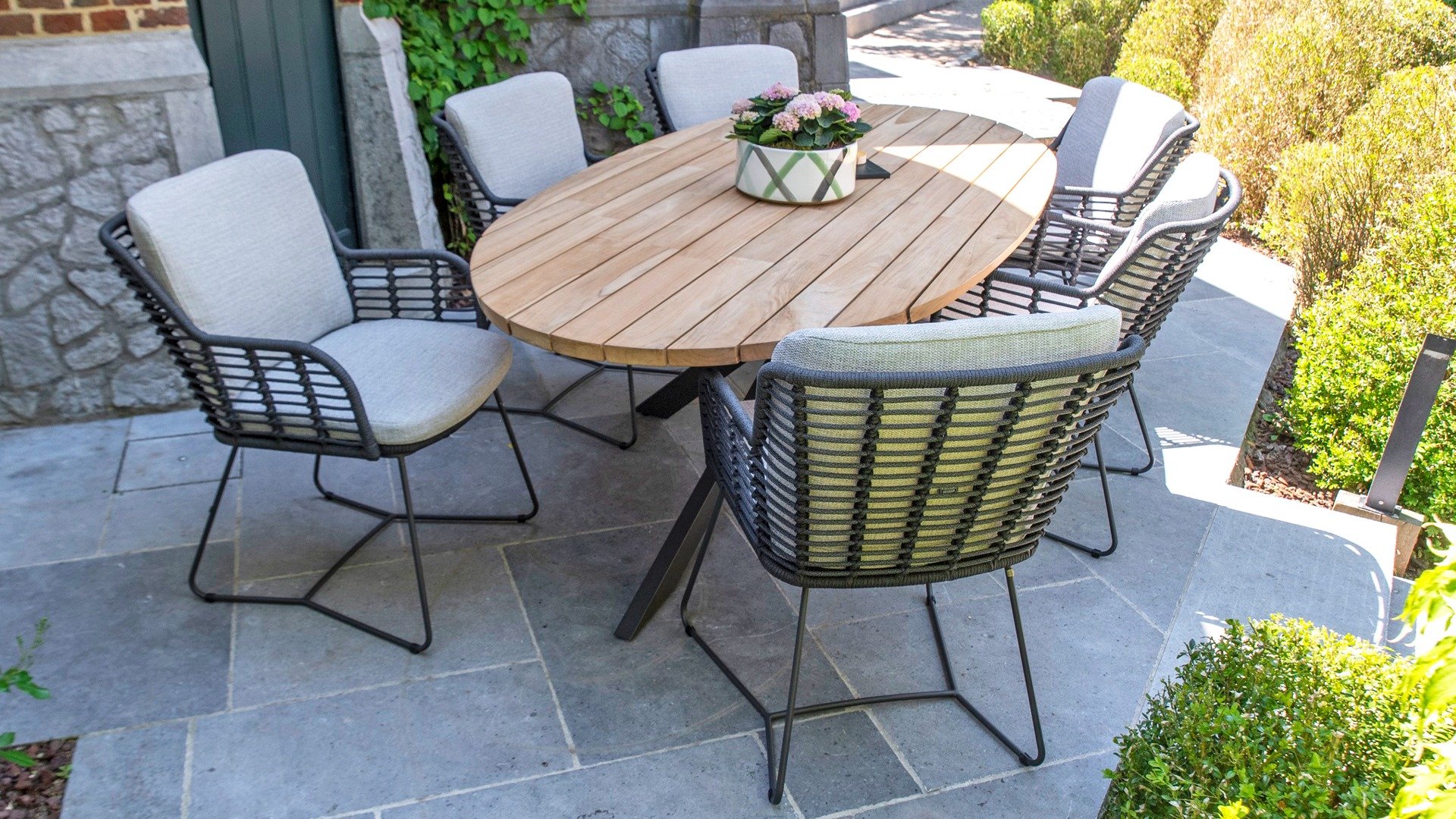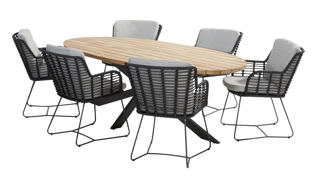 1 x Taste Prado Ellips tafel 240x115cm teak-alu antraciet