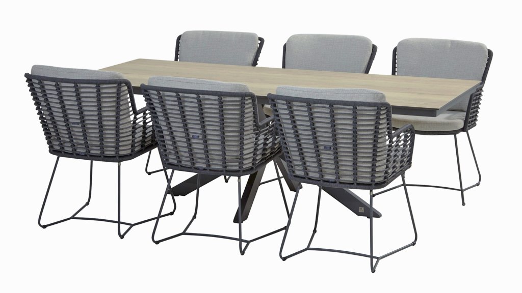 1 x 4Seasons Minerva tafel 220x95cm alu antraciet-HPL teak pattern