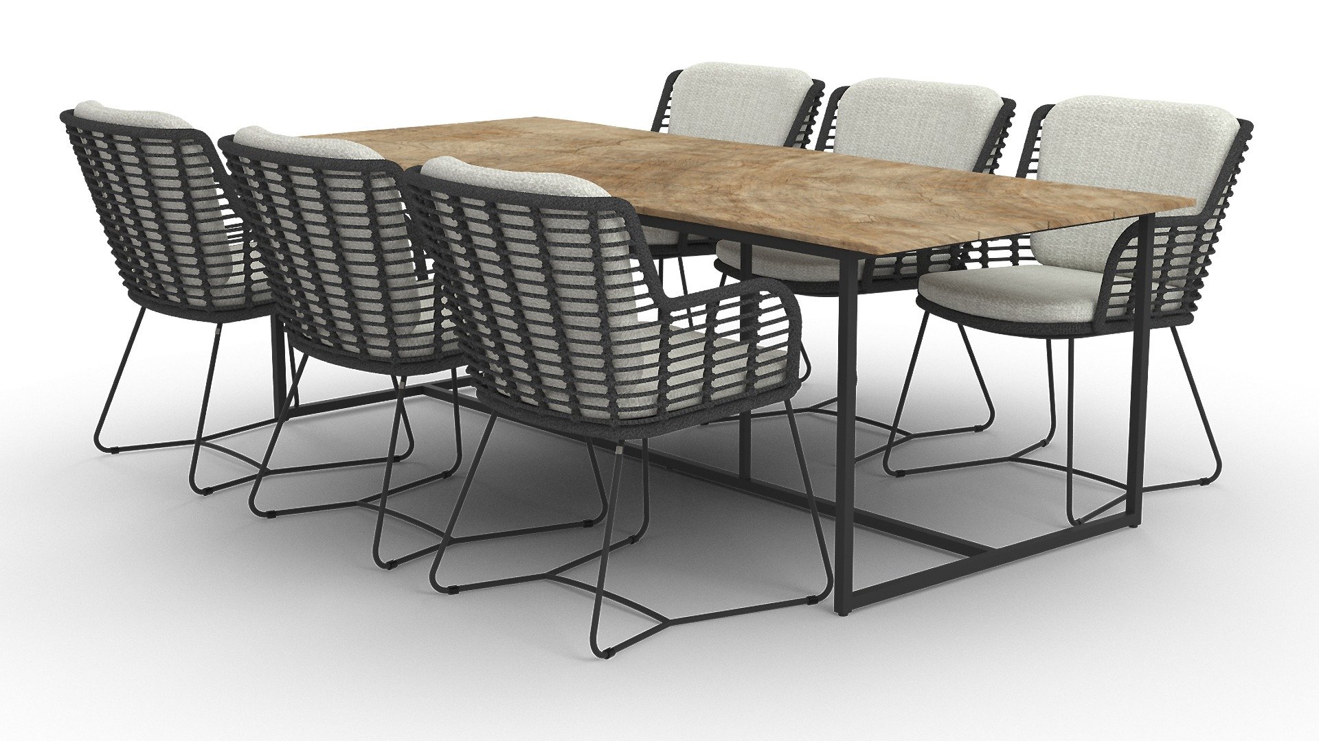 Gemaakt van de beste materialen, gemaakt met passie. Deze dining serie heeft niet alleen flair, maar ook een uitstekend zitcomfort. Het strak gewoven rope is gemaakt van kunststof rope wat een kern bevat, hierdoor is het kleurvast, schimmel- en UV-bestendig. De kussens zijn gemaakt van Olefin wat kleurvast, comfortabel en waterbestendig is. De combinatie van de kussens samen met een schuine rug zorgt voor een comforabele zit. Een design van 4 Seasons wat een lust voor het oog is. De stoel is ook verkrijgbaar in de volgende kleuren: Green & Frozen.
