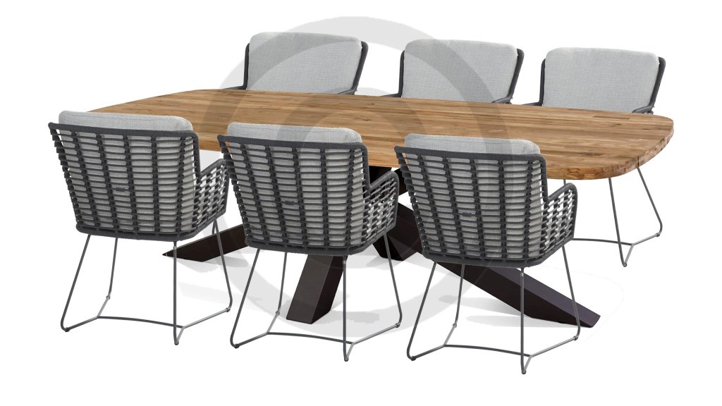1 x SenS Boston Tafel 240x100cm Alu antraciet/Recycled Teak