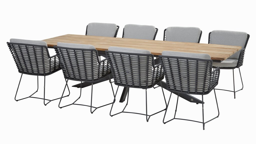 1 x 4Seasons Minerva tafel 280x95cm alu antraciet-robusto teak
