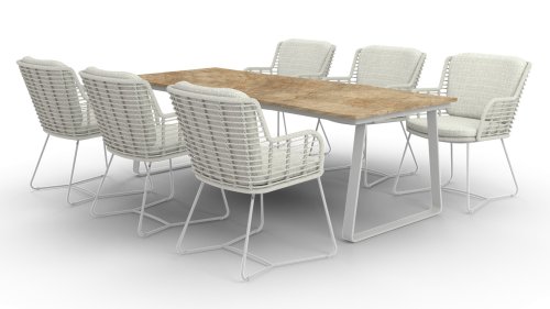 De 4Seasons Outdoor Fabrice Dining serie staat voor uitmuntend comfort. De 4Seasons Fabrice Dining serie kenmerkt zich door sierlijke vormen die herinneringen oproepen aan vervlogen tijden. Utliem zit comfort is hët kenmerk van de 4SO Fabrice Dining serie. Het model is afgeleid van de bekende Engelse ’oor’ stoelen of ’rook’ stoelen. Mede hierdoor heeft de 4SO Fabrice een herkenbare en tijdloze uitstraling. Een uitstraling die feitelijk nooit gaat vervelen. Het comfort van de Fabrice serie is fenomenaal. Dankzij de hoge rug ervaart u de ultieme steun en dat is wat uw rug verdient. Of u nou een krantje leest in de ochtend of even uw ogen sluit na het eten, met de 4Seasons Fabrice collectie is het heerlijk relaxen op elk moment van de dag! Verrijk uw tuin met deze echte klassieker in een nieuw jasje!
