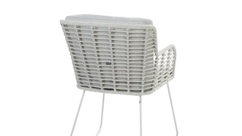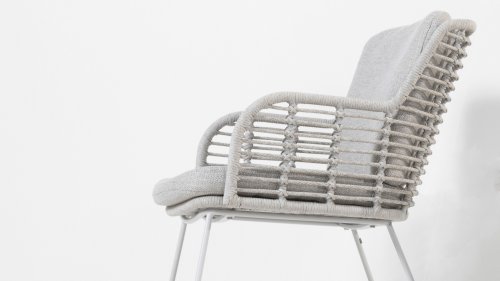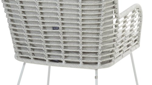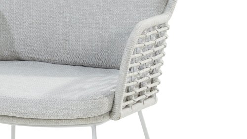 Het 4Seasons Fabrice frame is omvlochten is met Frozen gekleurd synthetische wicker in de vorm van touw (Rope). De kussens zijn uitgevoerd in een prachtige light grey kleurige Olefin stof. Door de veerkracht van het Rope materiaal en de fijne kussens ontstaat een subliem zit-comfort! De kussens hebben een Olefin hoes welke af te ritsen is en uit te wassen op 30 graden. Deze stof is zeer weerbestendig en duurzaam.