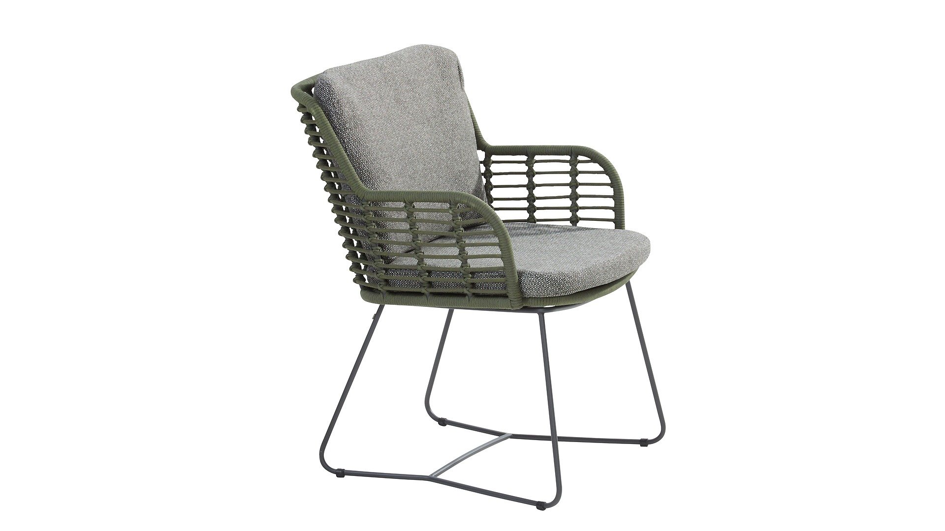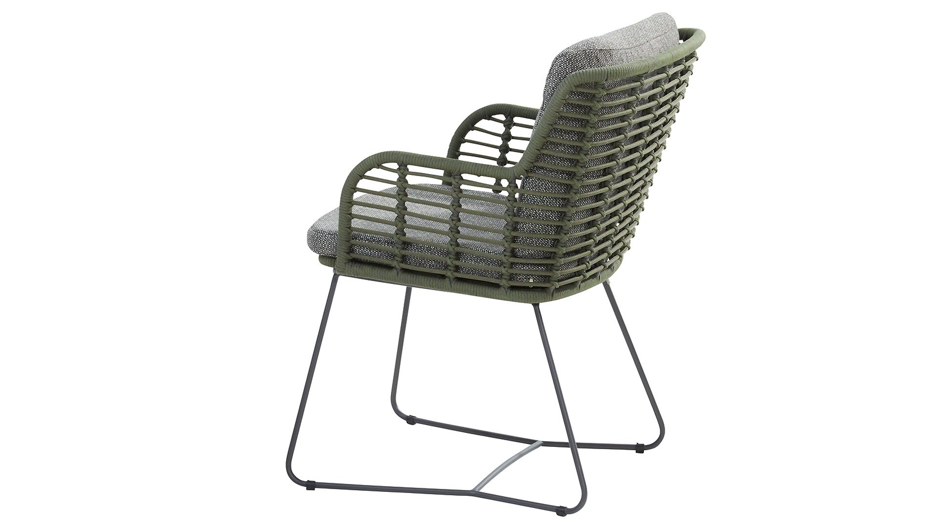 Gemaakt van de beste materialen, gemaakt met passie. Deze dining serie heeft niet alleen flair, maar ook een uitstekend zitcomfort. Het strak gewoven rope is gemaakt van kunststof rope wat een kern bevat, hierdoor is het kleurvast, schimmel- en UV-bestendig. De kussens zijn gemaakt van Olefin wat kleurvast, comfortabel en waterbestendig is. De combinatie van de kussens samen met een schuine rug zorgt voor een comforabele zit. Een design van 4 Seasons wat een lust voor het oog is. De stoel is ook verkrijgbaar in de volgende kleuren: Frozen & Antracite.