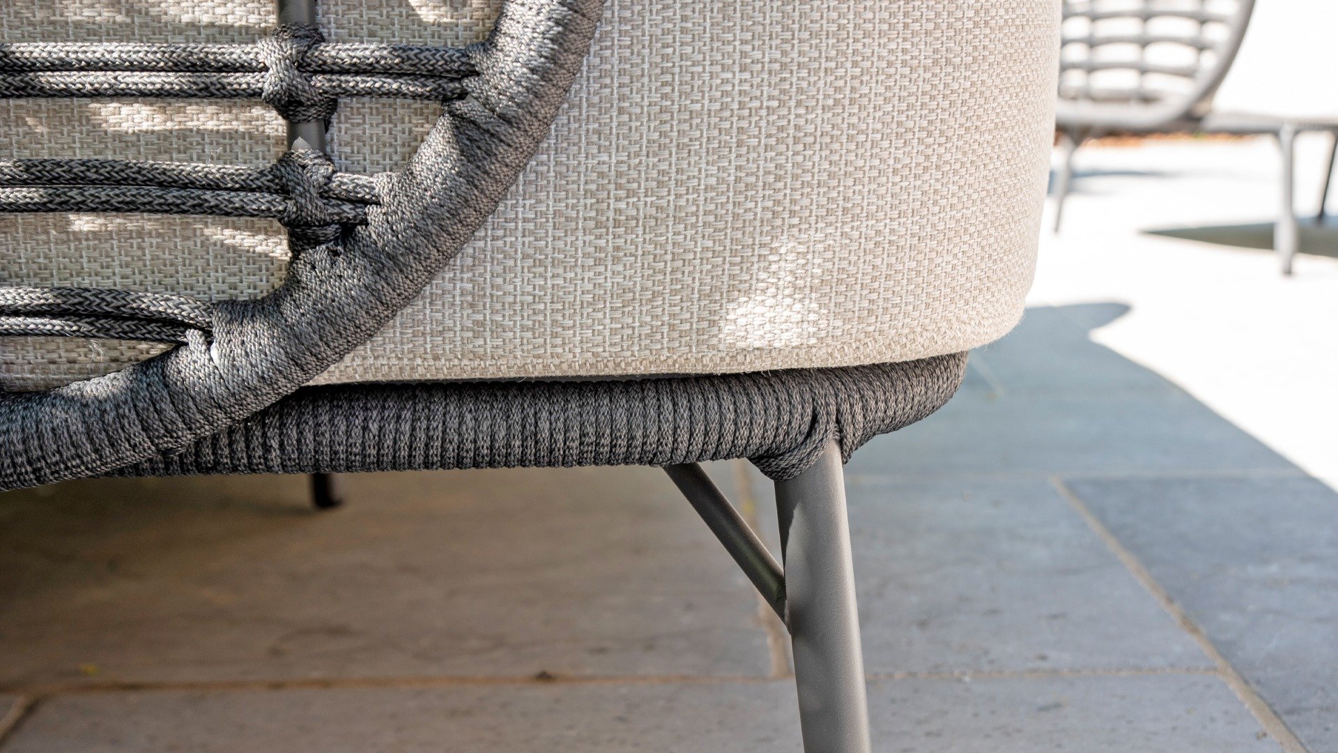 Dit prachtige materiaal is perfect voor buitengebruik, want 4SO Rope is niet zo maar een gewone veter waar u uw schoenen mee strikt. 4Seasons gebruikt zeer hoge kwalitiets Rope gemaakt van 100% SDP ( Slution Dyed Polypropylene). Dit materiaal is extreem sterk en heeft een zeer klein rekbaarheids percentage. Polyproylene is op olie basis waardoor vuil en verontreiniging nauwelijks in kan dringen, net als onze kussens. 4Seasons biedt exclusieve designs, waarbij hand geweven Rope patronen en technieken worden gebruikt.