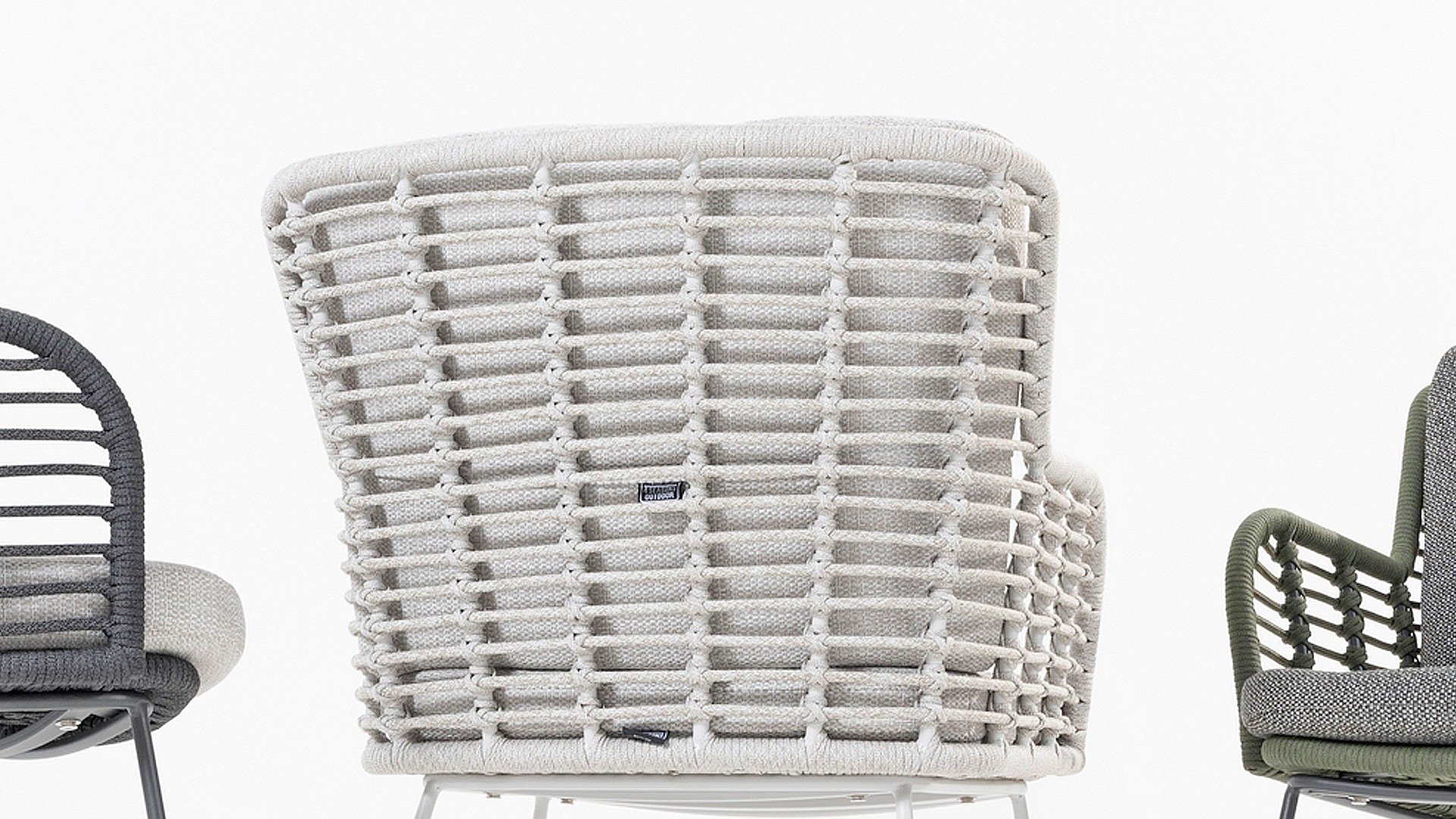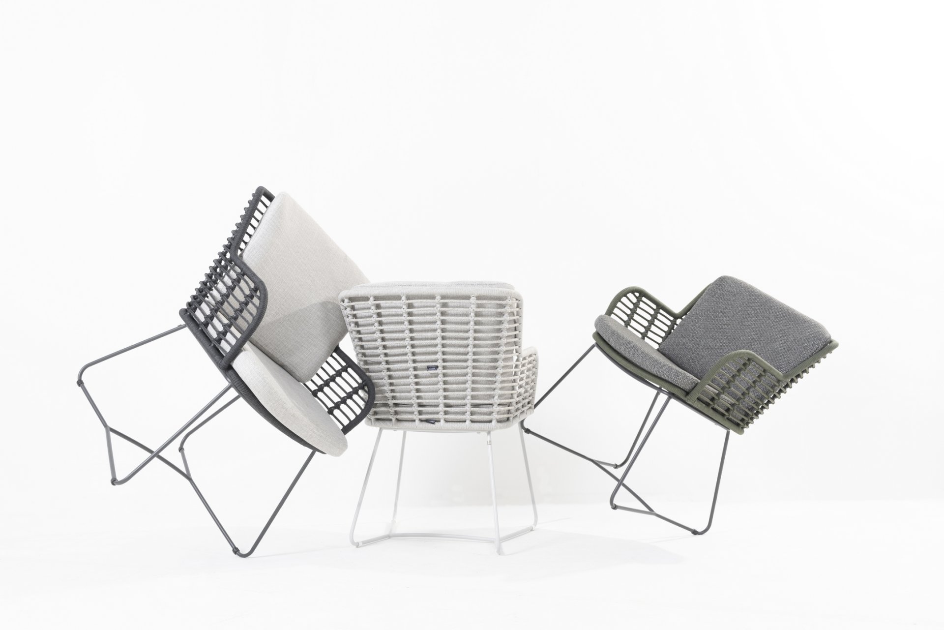Gemaakt van de beste materialen, gemaakt met passie. Deze prachtige 4Seasons Fabrice dining serie heeft niet alleen flair, maar ook een uitstekend zitcomfort. Dit model is te verkrijgen in Antracite, Frozen & Green. De gebruikte materialen zijn kunststof rope, olefin & aluminium. Kunststof rope bevat een kern wat zorgt voor kleurvastheid en maakt het schimmelbestendig. Olefin maakt de kussens ook kleurvast en waterbestendig, de stof voelt ook comfortabel aan. Het onderstel van de Fabrice is aluminium dat is gepoedercoated om het strakke design af te maken!