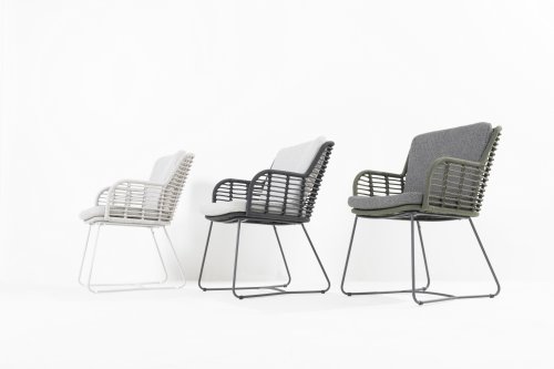 Gemaakt van de beste materialen, gemaakt met passie. Deze prachtige 4Seasons Fabrice dining serie heeft niet alleen flair, maar ook een uitstekend zitcomfort. Dit model is te verkrijgen in Antracite, Frozen & Green. De gebruikte materialen zijn kunststof rope, olefin & aluminium. Kunststof rope bevat een kern wat zorgt voor kleurvastheid en maakt het schimmelbestendig. Olefin maakt de kussens ook kleurvast en waterbestendig, de stof voelt ook comfortabel aan. Het onderstel van de Fabrice is aluminium dat is gepoedercoated om het strakke design af te maken!
