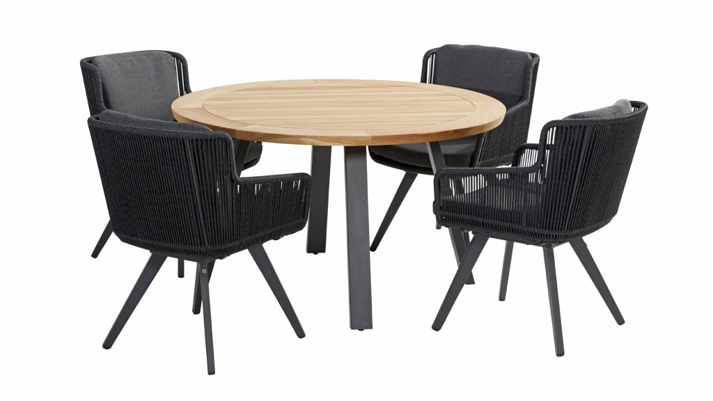 Dineren in stijl begint met de 4SO Flores serie. Er zijn 3 versies ontworpen waaruit je kunt kiezen. Wat is jouw favoriet om te combineren met je ideale eettafel? Groen rope met teak poten, of antraciet rope met teak of aluminium poten? Het kussen is afneembaar en mag gewassen worden op 30 graden. Met de Flores Alu-Antraciet tuinstoel van 4 Seasons Outdoor maak je van je eettafel in een handomdraai een feestelijke eettafel. Want we moeten de realiteit onder ogen zien: met zoveel kwaliteit en stijlen is buiten eten toch een feestje geworden, je hoeft er niet eens jarig voor te zijn!