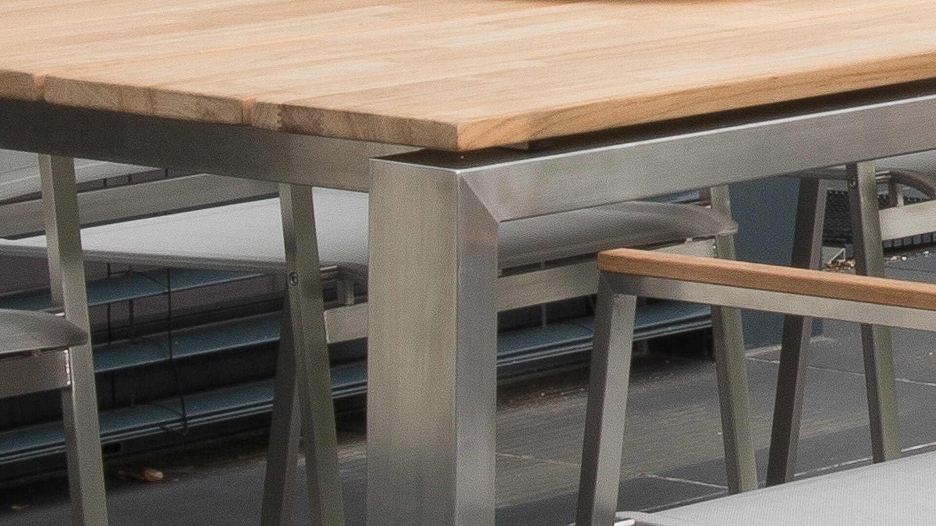 Roestvaststaal, mits goed afgewerkt, heeft een uitzonderlijk lang leven. Hoewel tuinmeubelen van RVS prima van elke gewenste kleur kunnen worden voorzien, is het juist de kleur en uitstraling van het materiaal zelf dat veel mensen aanspreekt. Goed laswerk en de nabehandeling zijn daarvoor wel essentieel en daar kunt u van op aan bij 4 Seasons Outdoor. Het staal is van zichzelf volledig beschermd tegen roest door een ondoordringbaar oxidelaagje.