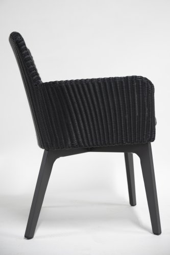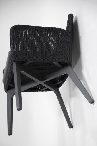4 Seasons Lisboa is vervaardigd uit Ø 2 mm Hularo polyloom antraciet draad en dik weerbestendig aluminium. Het Hularo wicker is van zeer hoogwaardige kwaliteit en met de hand gevlochten zodat deze stoel behalve het exclusieve design ook weerbestendig en zeer duurzaam is.
