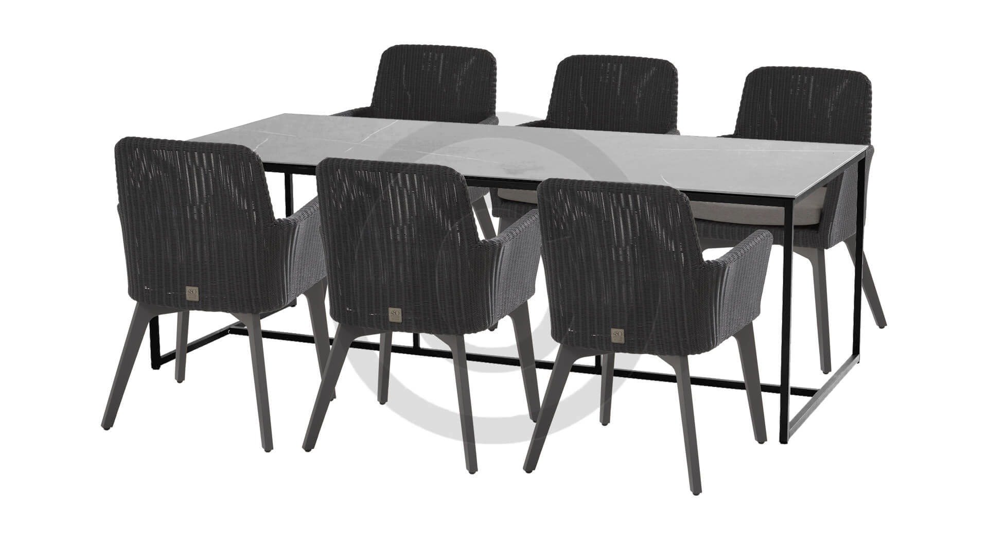 1 x 4Seasons Outdoor Quatro Tafel Antraciet 220x95cm Keramiek Light Grey Marble