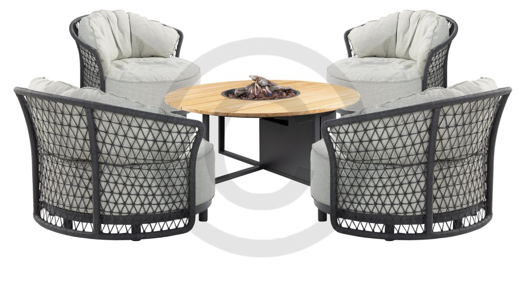 1 x CosiLoft vuurtafel Alu Black/Teak Natural Ø120x47cm (DxH)