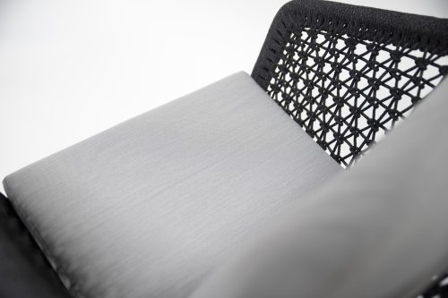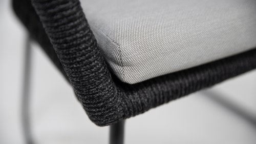 Het 4 Seasons Mila frame is omvlochten is met antraciet synthetische wicker in de vorm van touw (Rope). De kussens zijn uitgevoerd in een prachtige grijs kleurige Olefin stof. Door de veerkracht van het Rope materiaal en de heerlijke zit-en rugkussens ontstaat een subliem zit-comfort! De kussens hebben een Olefin hoes welke af te ritsen is en uit te wassen op 30 graden. Deze stof is zeer weerbestendig en duurzaam.