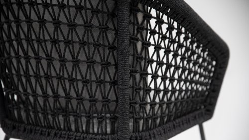 De 4 Seasons Mila tuinset heeft een moderne maar toch rustieke uitstraling met een natural touch die zo kenmerkend is voor het Design. De schoonheid zit hem in de details. Het frame van de 4 Seasons Mila diningstoel loopt strak en vloeiend in elkaar over en is afgewerkt met het strak omvlochten Rope. Rug en zitting zijn gevlochten met dit sterke Rope en geeft een stevige maar comfortabele zit. Het frame vormt een speels en minimalistisch samenspel van vloeiende lijnen die samenkomen en weer uit elkaar gaan. De zijkanten en achterkant is met kunstig kruislings gevlochten Rope afgewerkt waardoor een speels geknoopt ruitenpatroon ontstaat... Kortom een lust voor het oog!