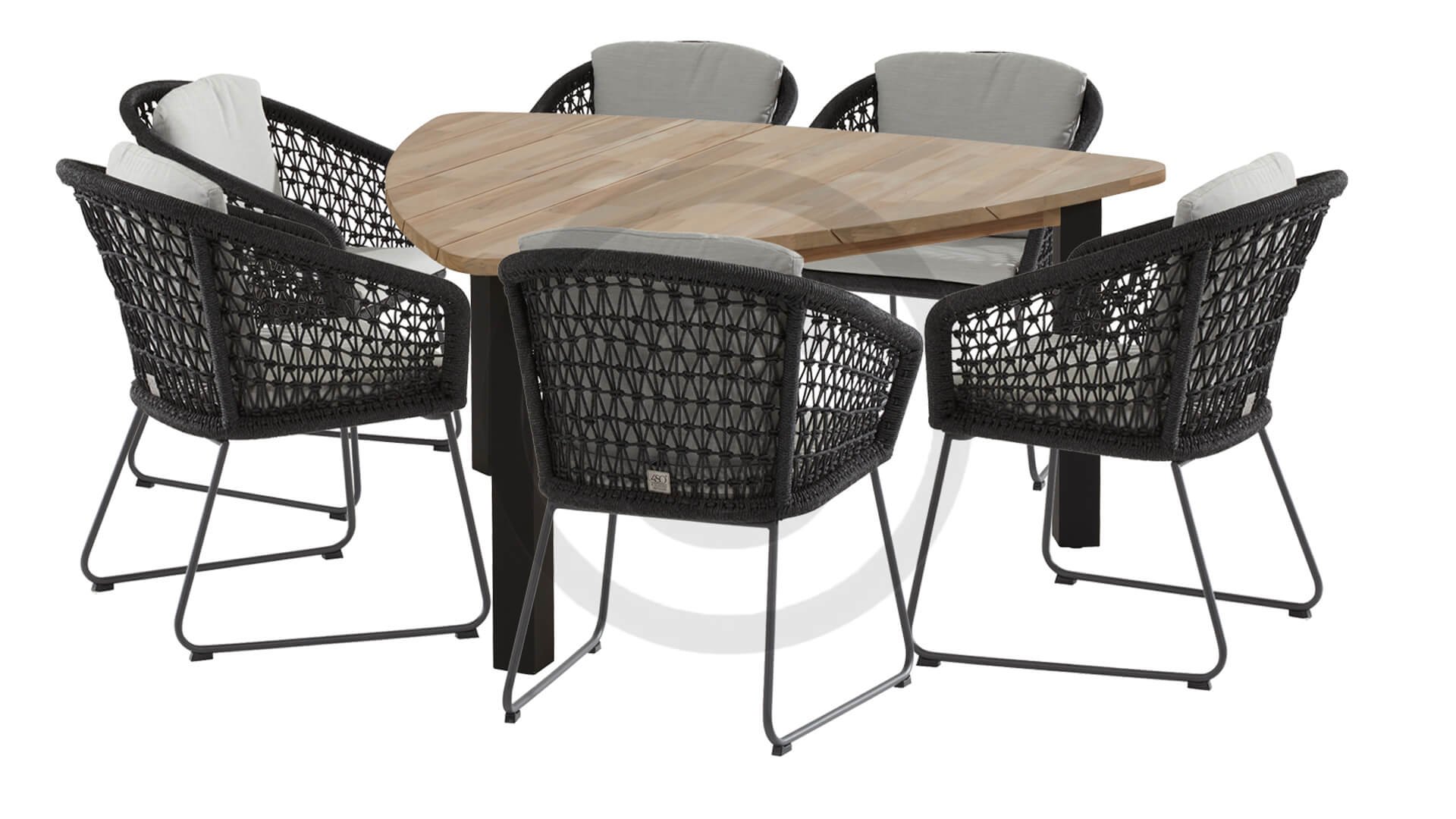 De 4 Seasons Mila is een prachtig design die mooie gewoven patronen bevat. Gemaakt van kunststof draad waar een kern in zit voor extra stevigheid, ook is het kleurvast, schimmelbestendig, en kan het tegen hoge en lage temperaturen. De kleurencontrast van de kussens en het frame maakt de stoel elegant. De kussens zijn gemaakt van Olefin wat kleurvast, comfortabel, waterafstotend, uitrits- en wasbaar is op 30°. Ga ervoor zou ik zeggen!