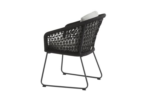 Het 4Seasons Mila frame is omvlochten is met antraciet synthetische wicker in de vorm van touw (Rope). De kussens zijn uitgevoerd in een prachtige grijs kleurige Olefin stof. Door de veerkracht van het Rope materiaal en de heerlijke zit-en rugkussens ontstaat een subliem zit-comfort! De kussens hebben een Olefin hoes welke af te ritsen is en uit te wassen op 30 graden. Deze stof is zeer weerbestendig en duurzaam.