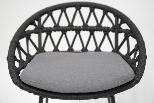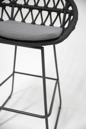 Deze 4 Seasons Motivi barstoel past perfect in onze uitgebreide tuinmeubelcollectie. Geniet van een prachtig ontwerp met een geknoopt patroon van rope en organische vormen. Het draad is gemaakt van Kunststof rope wat stevig is vanwege zijn kern, dit maakt het ook kleurvas en schimmelbestendig. Gepoedercoat R.V.S. is wat het onderstel is. En dat tezamen met Olefin kussens dat comfortabel aanvoelt, waterafstotend en ook kleurvast is zorgt voor optimaal genieten aan een bartafel. Motivi heeft de potentie om je nieuwe favoriete plek op je terras te worden. Ontmoet elkaar aan de bar!