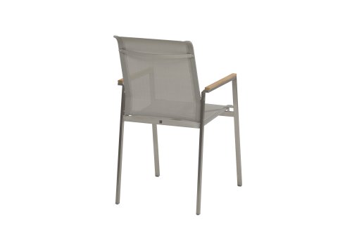 De stapelbare stoel van de 4Seasons Passion-serie is de ideale combinatie van hoge kwaliteit roestvrij staal, twitchell textileen en warme teakhout. Door deze interactie van de verschillende materialen zijn deze stoelen veelzijdig te combineren met verschillende tafels.