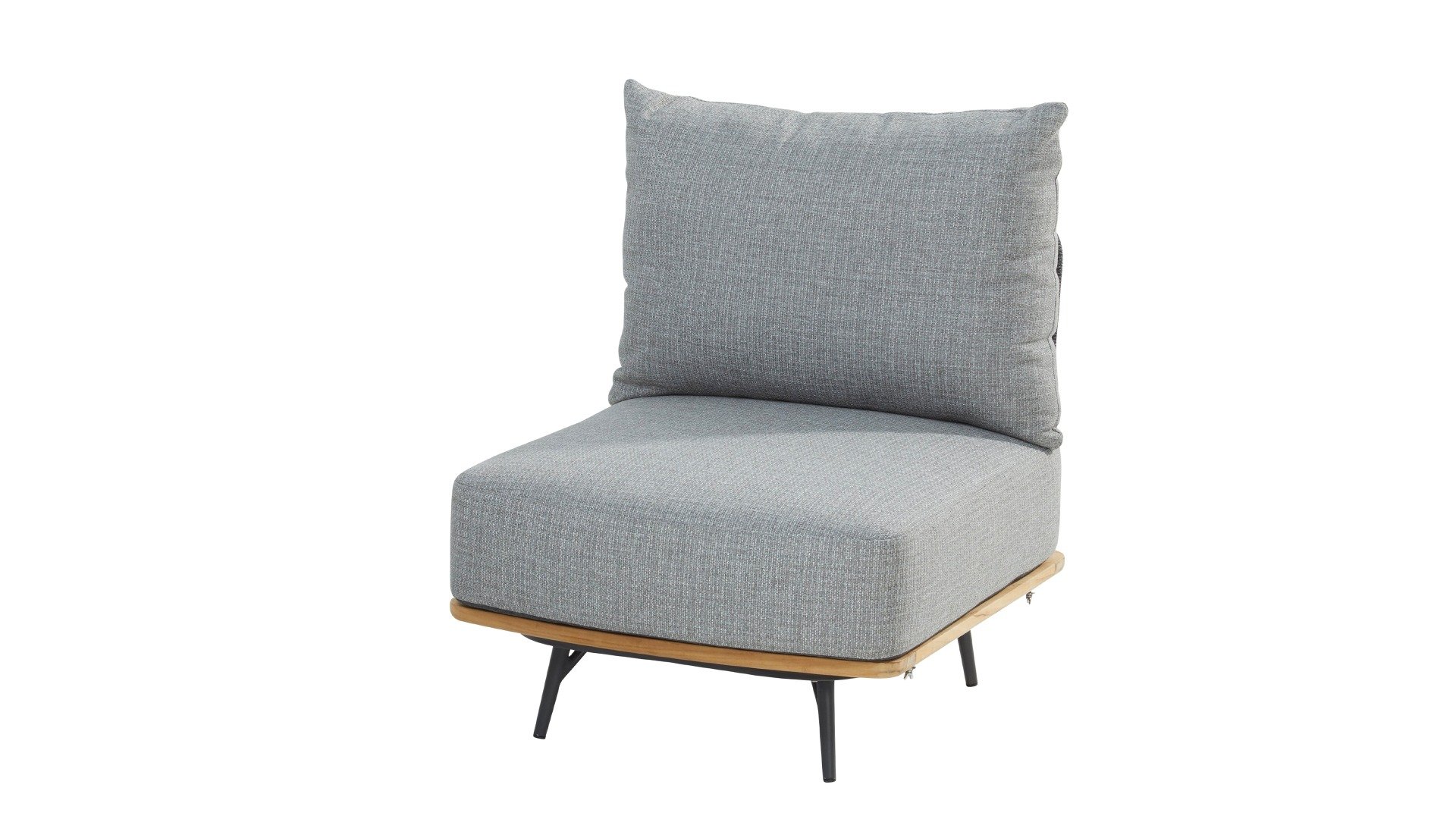 Loungeset Positano van 4 Seasons Outdoor maakt gebruik van zachte, harmonieuze tinten en een aangenaam rond design. Super dikke, comfortabele kussens en warme teakhouten touch versterken het vertrouwde en warme imago