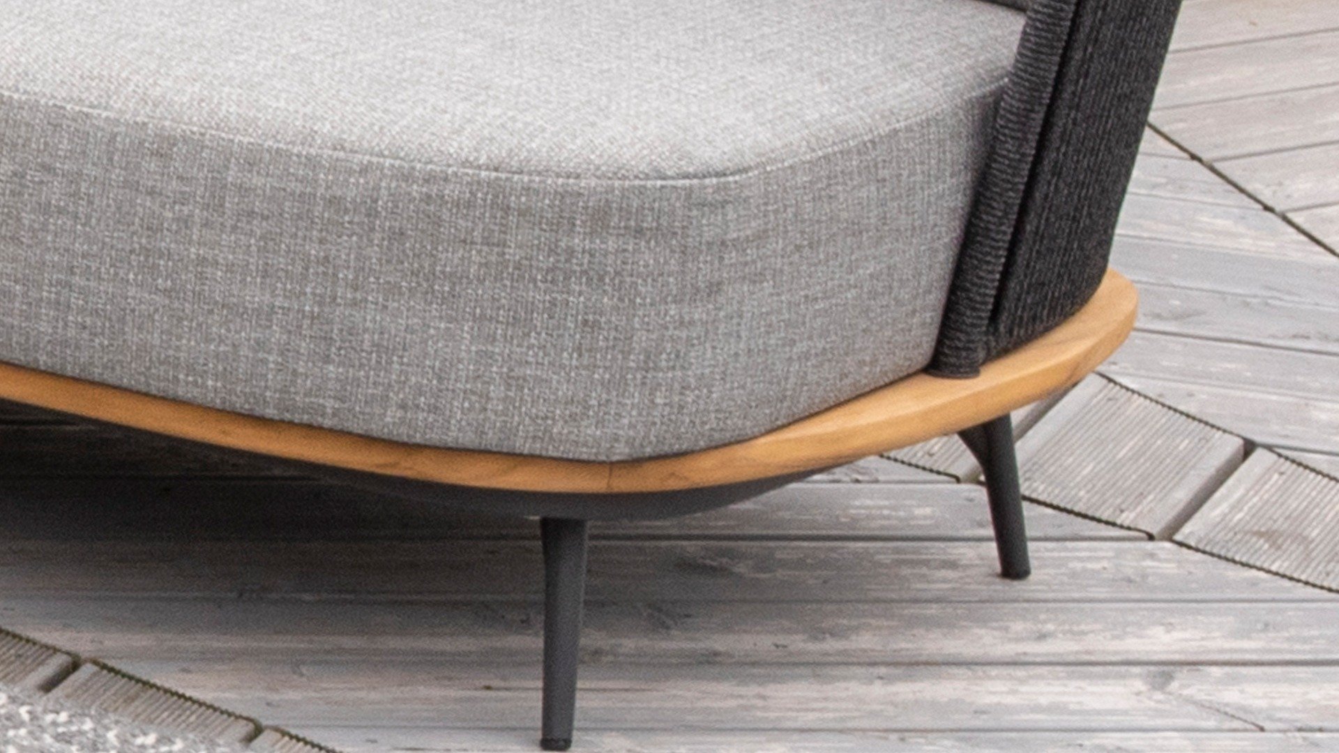 Loungeset Positano van 4 Seasons Outdoor maakt gebruik van zachte, harmonieuze tinten en een aangenaam rond design. Super dikke, comfortabele kussens en warme teakhouten touch versterken het vertrouwde en warme imago